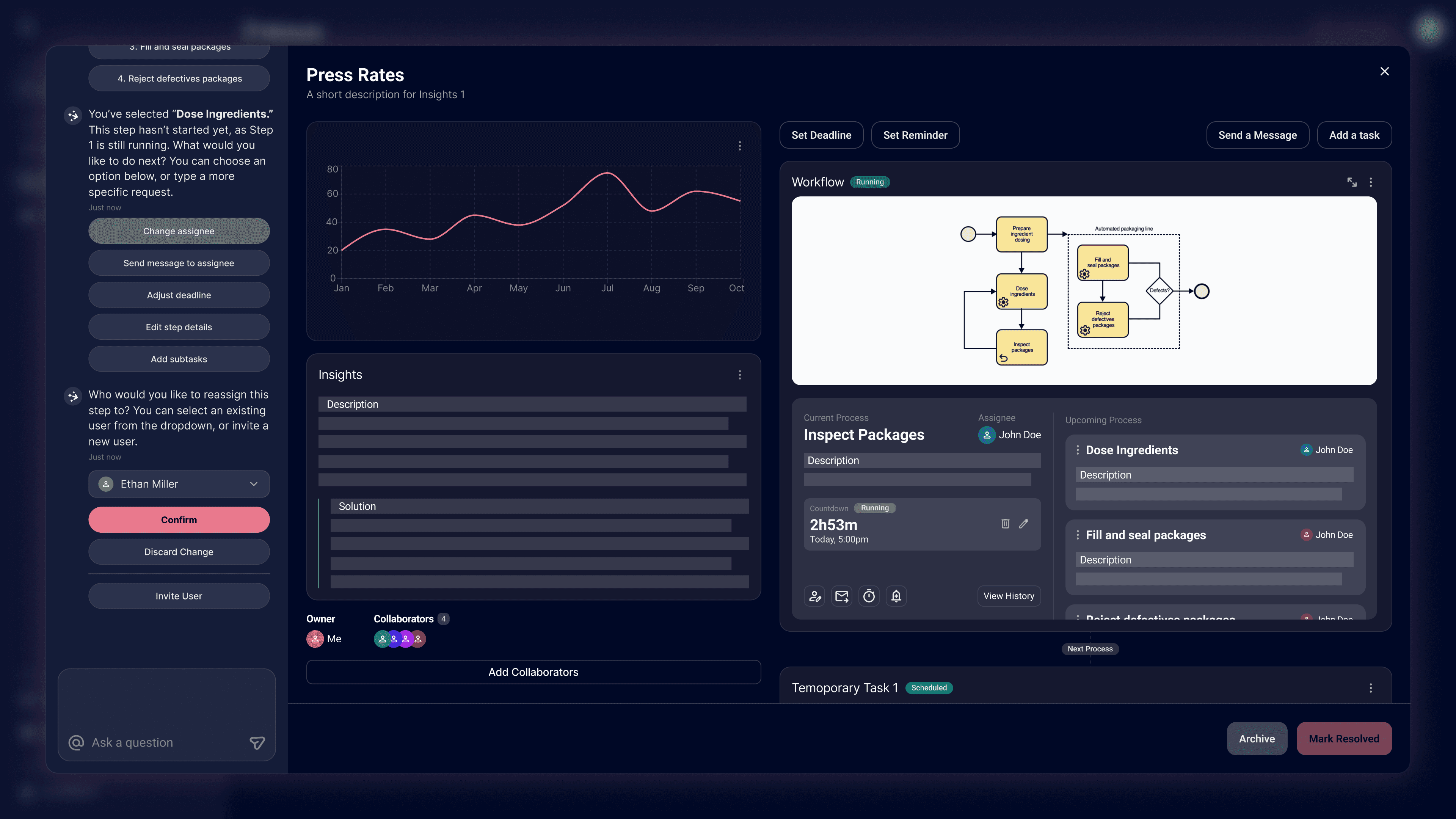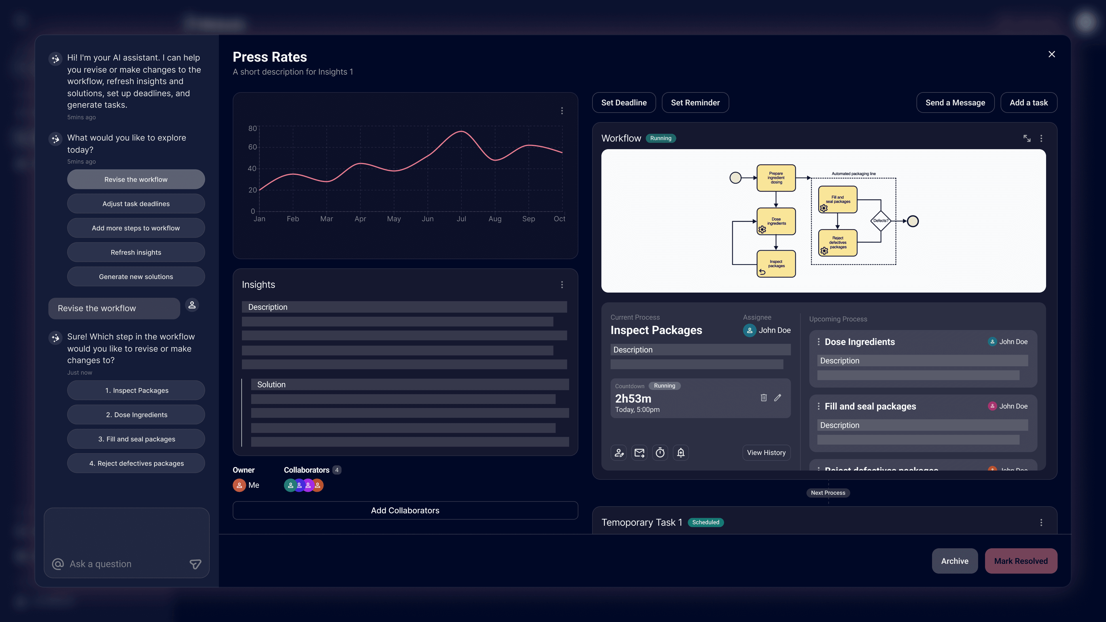 The AI assistant not only provides analysis tailored to the current context, but also offers suggestions that can be executed directly. Users can choose to make manual adjustments or rely on the AI to simplify the modification process, reducing overall interaction cost. Through preset actions and guided interactions, users no longer need to repeatedly type instructions but directly interacting with AI to modify workflows, generate solutions, or adjust processes on their behalf, evolving from a passive “analysis tool” into an active collaborator.