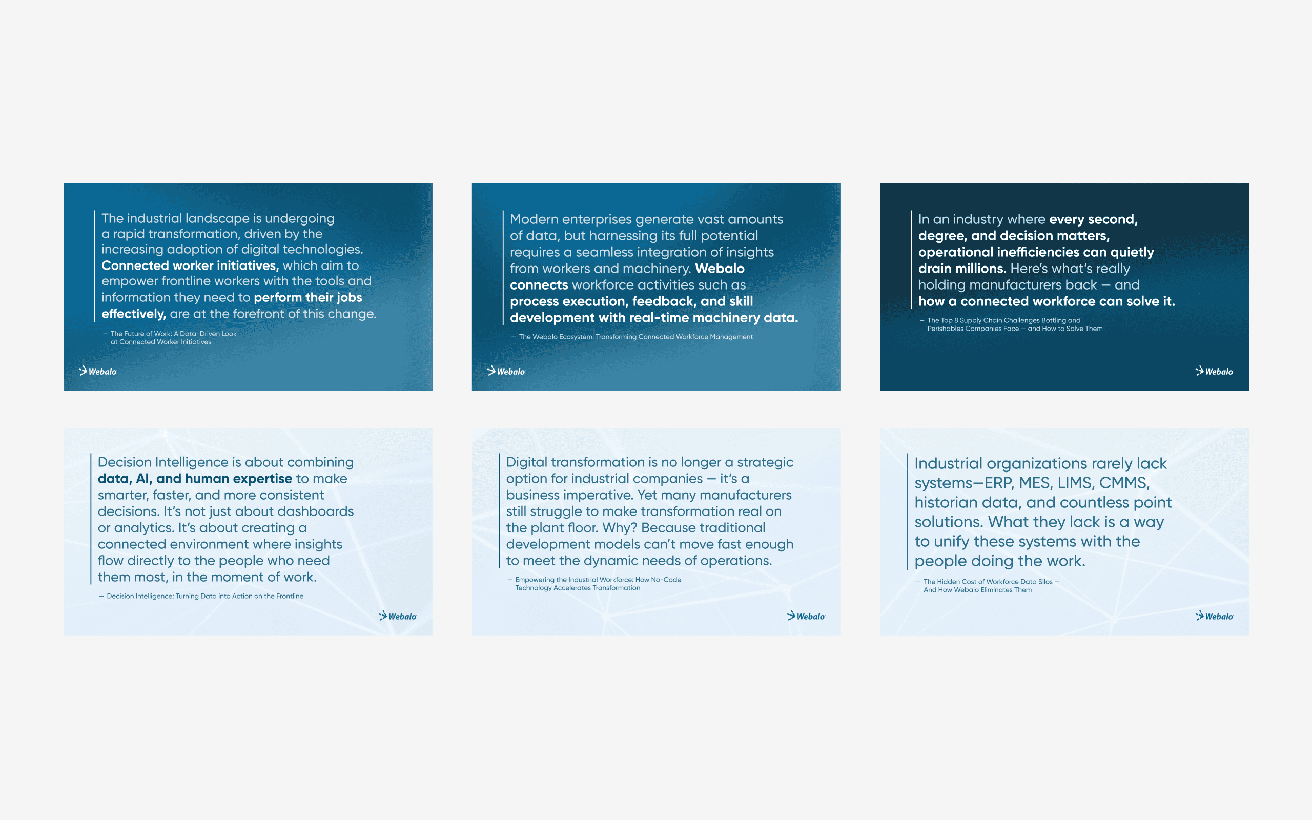 Working alongside the design lead, I contributed across both product and brand—taking on a broad range of design work that supported Webalo’s platform and visual identity.